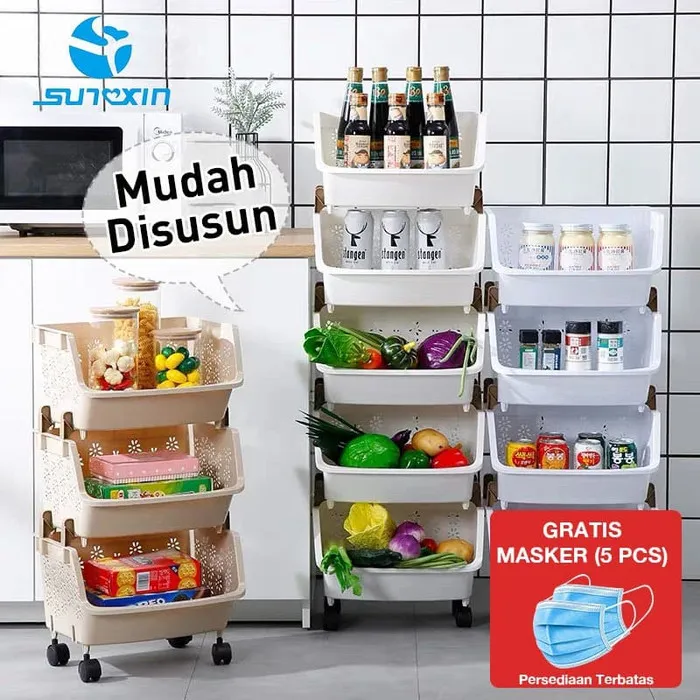 Promo Murah Cod Rak Dapur Plastik Tempat Penyimpanan Sayur Atau Barang Rumah Tangga 3 Susun